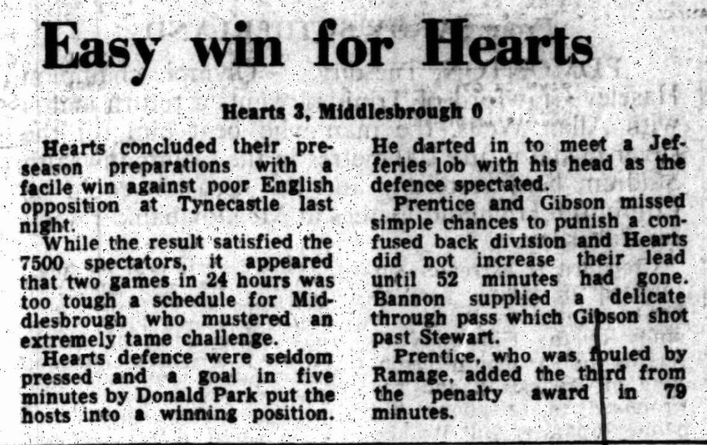 | Tue 08 Aug 1978 Hearts 3 Middlesbrough 0 | |||||||