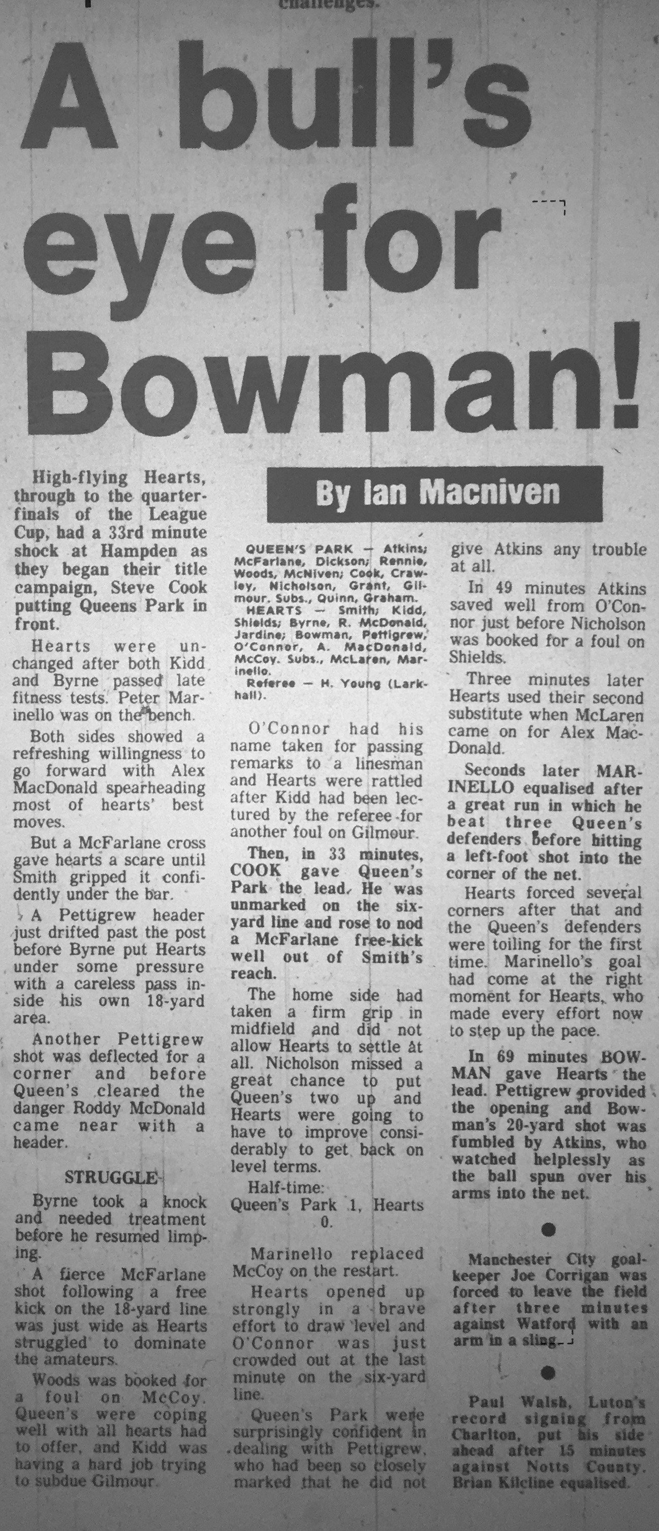 | Sat 04 Sep 1982 Queens Park 1 Hearts 2 | |||||||