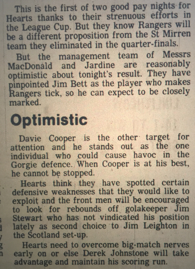 | Wed 27 Oct 1982 Rangers 2 Hearts 0 | |||||||