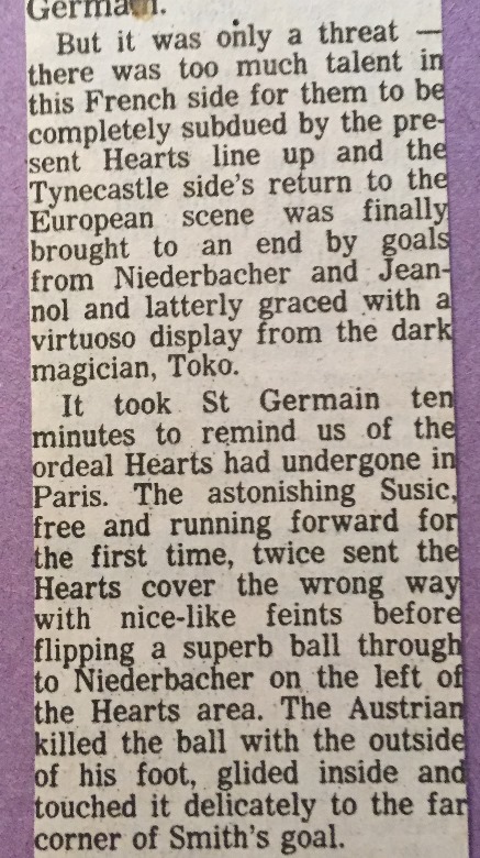 | Wed 03 Oct 1984 Hearts 2 Paris St Germain 2 | |||||||