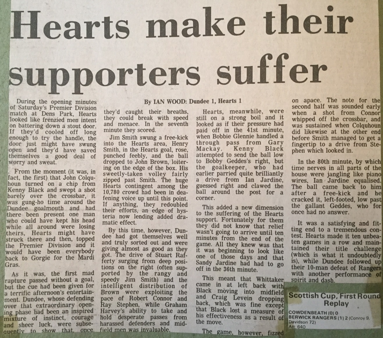 | Sat 07 Dec 1985 Dundee 1 Hearts 1 | |||||||
