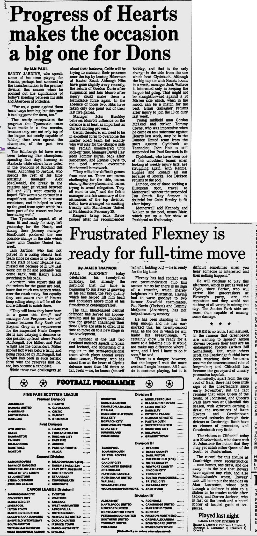 | Sat 18 Jan 1986 Aberdeen 0 Hearts 1 | |||||||
