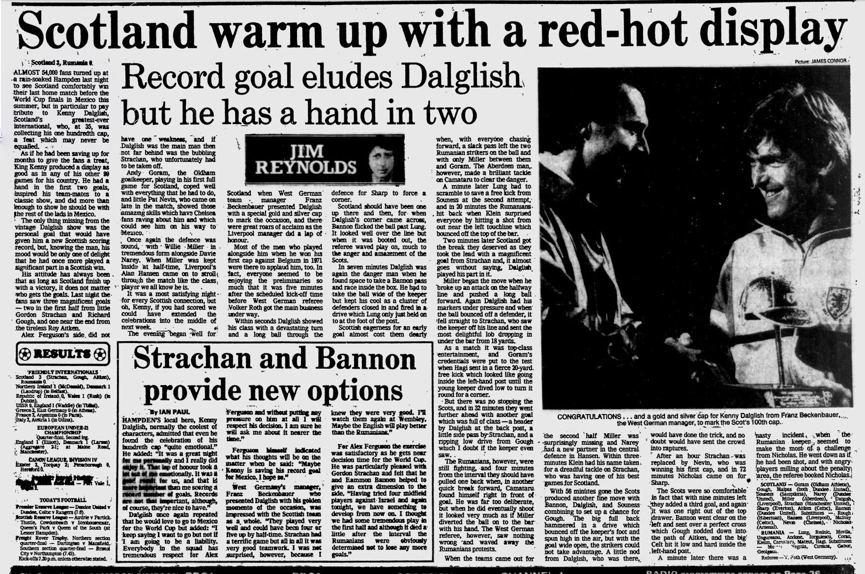 Wed 26 Mar 1986 Scotland 3 Romania 0