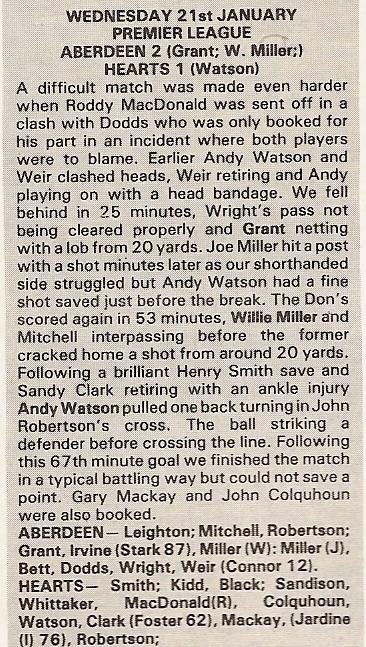 | Wed 21 Jan 1987 Aberdeen 2 Hearts 1 | |||||||