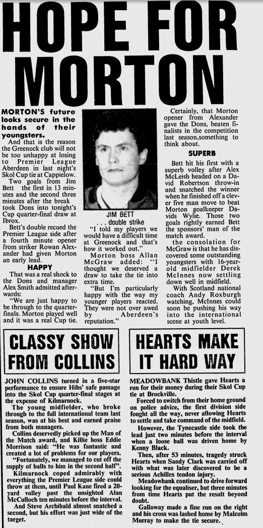 | Tue 23 Aug 1988 Meadowbank Thistle 0 Hearts 2 Tue 23 Aug 1988 Hibernian 1 Kilmarnock 0 |