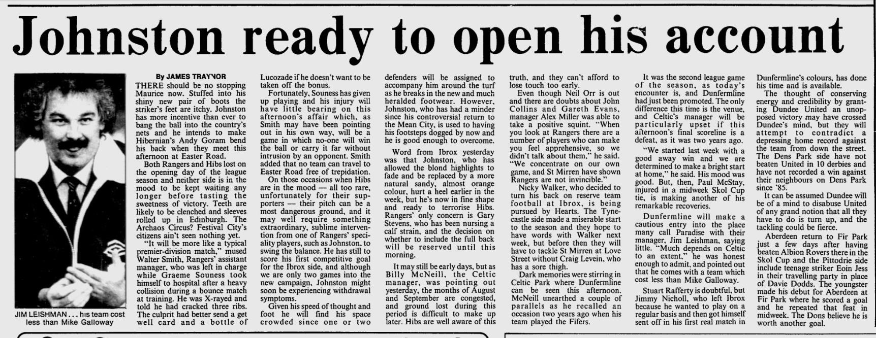 | Sat 19 Aug 1989 St Mirren 1 Hearts 2 | |||||||