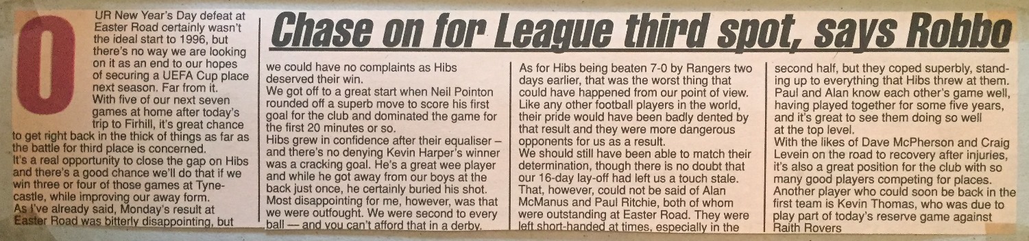 | Mon 01 Jan 1996 Hibernian 2 Hearts 1 | |||||||