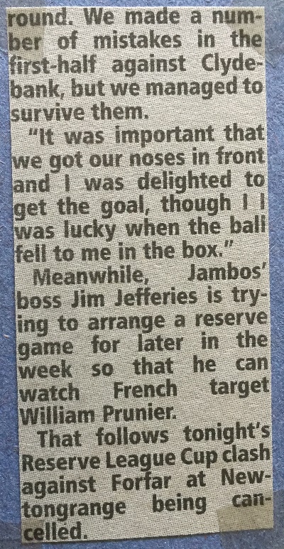 | Sat 24 Jan 1998 Hearts 2 Clydebank[4] 0 Sat 24 Jan 1998 Hibernian 1 Raith Rovers 2 |