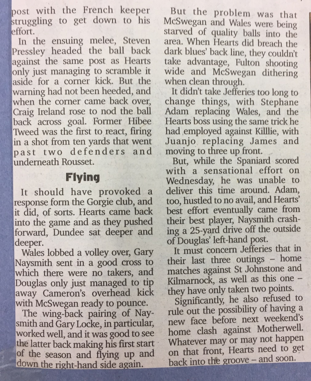 | Sat 30 Oct 1999 Dundee 1 Hearts 0 | |||||||