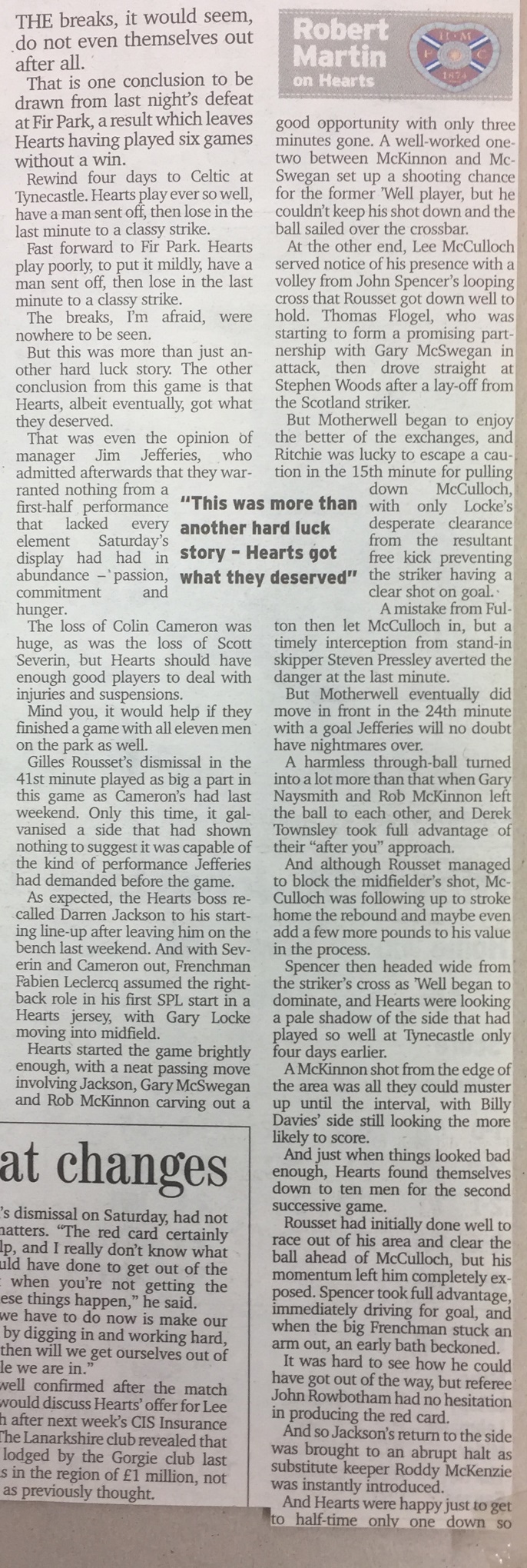 | Tue 23 Nov 1999 Motherwell 2 Hearts 1 | |||||||