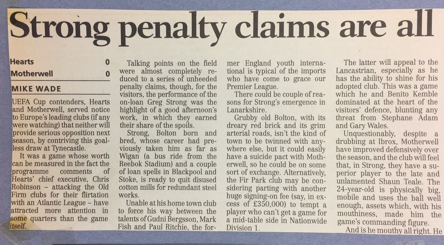 | Sat 25 Mar 2000 Hearts 0 Motherwell 0 | |||||||