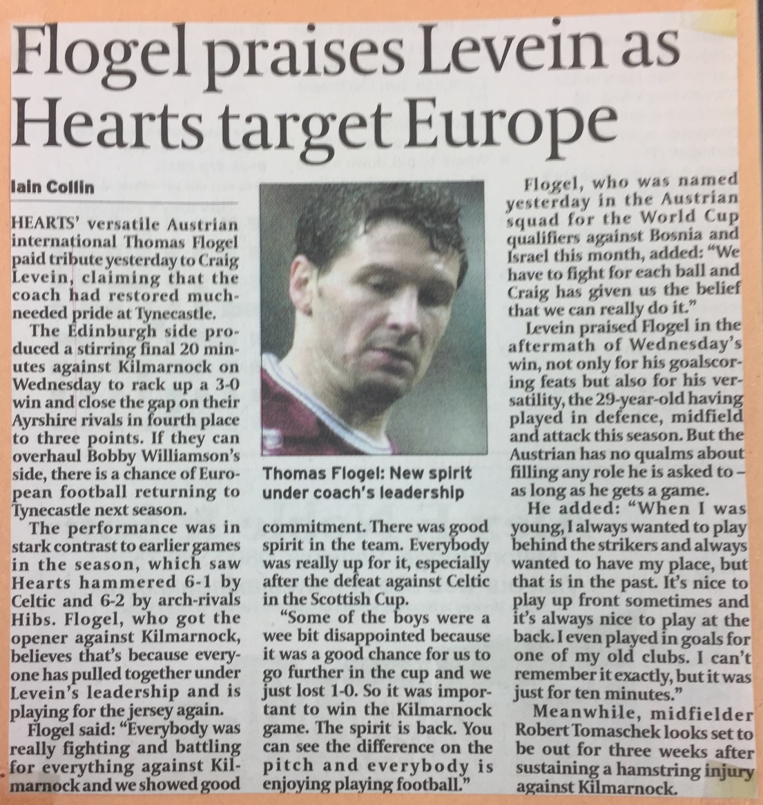 | Wed 14 Mar 2001 Hearts 3 Kilmarnock 0 | |||||||