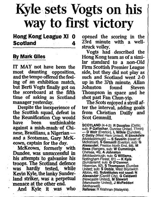 Thu 23 May 2002 Hong Kong League 0 Scotland 4