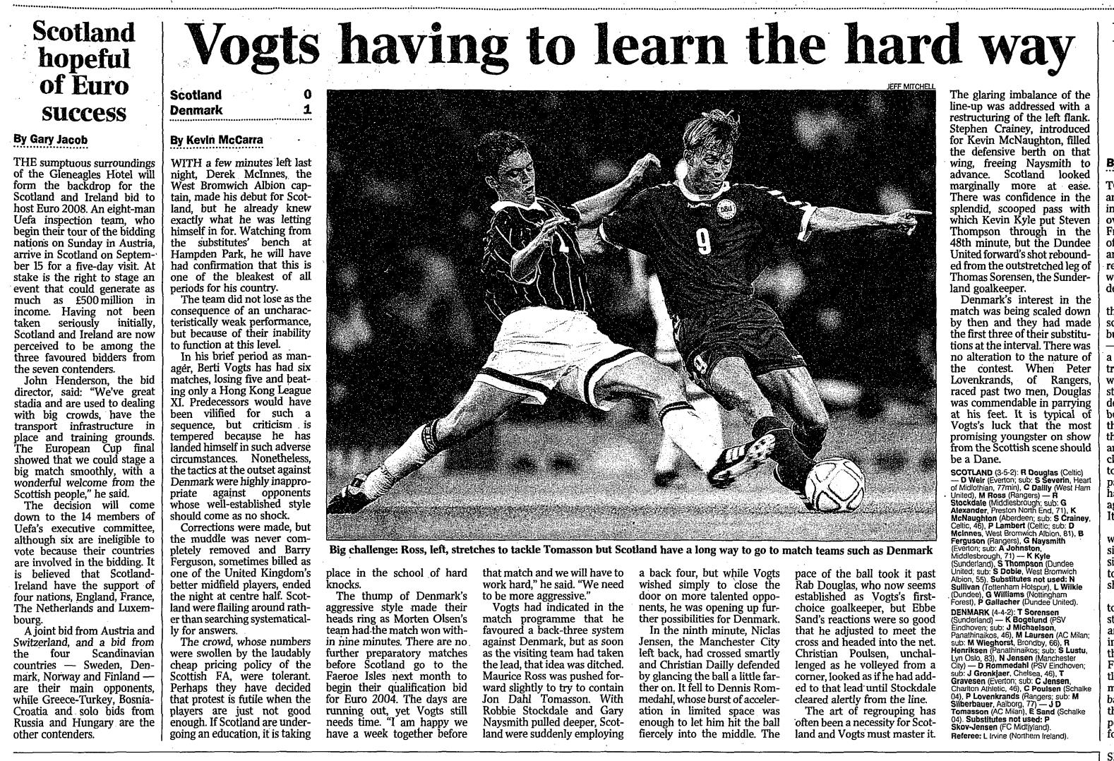Wed 21 Aug 2002 Scotland 0 Denmark 1
