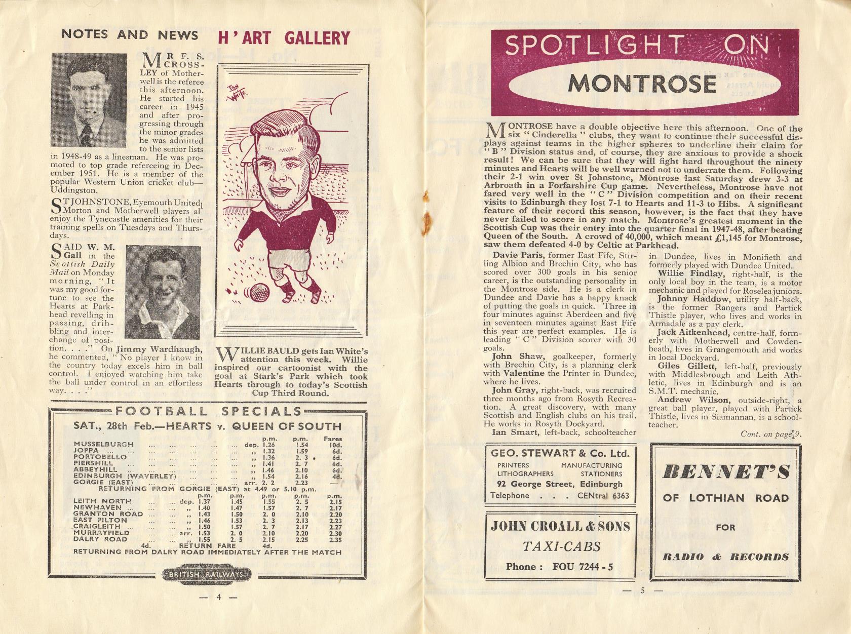 Sat 21 Feb 1953 Hearts 3 Montrose 1
