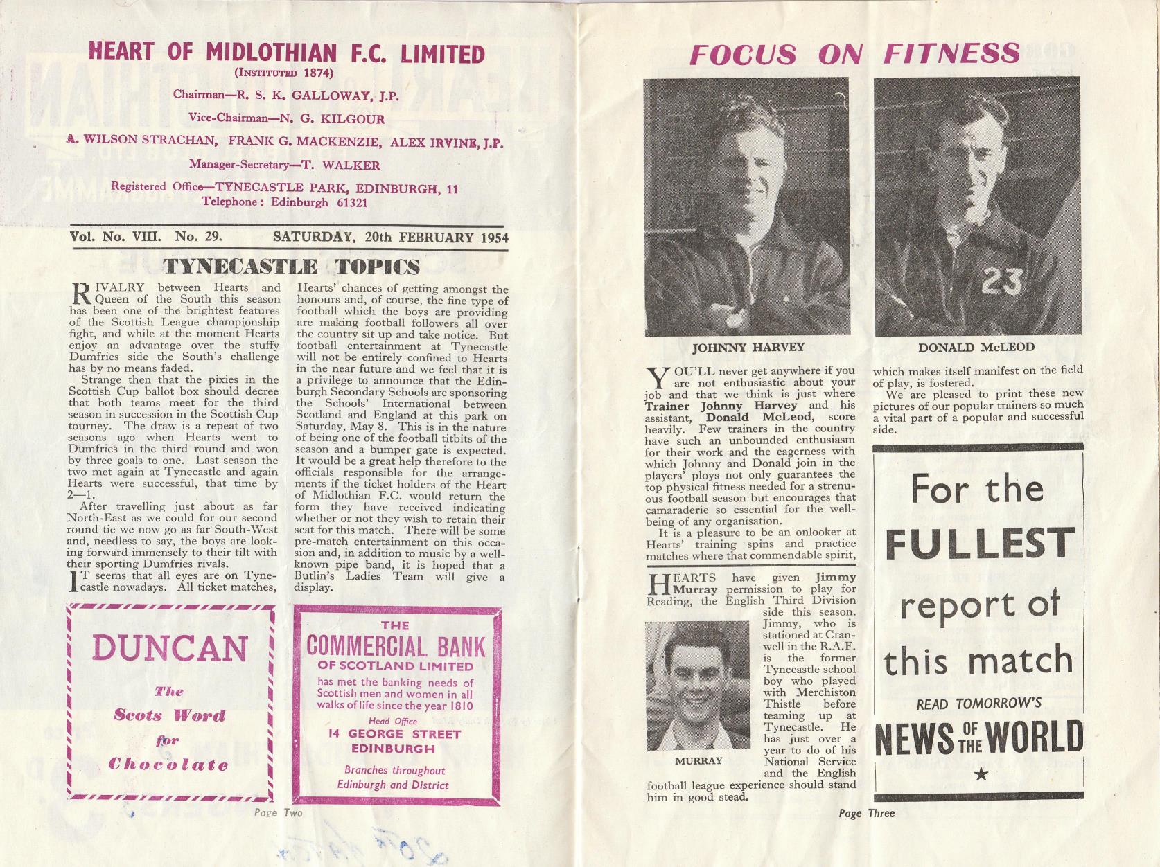 Sat 20 Feb 1954 Hearts 3 Rangers 3