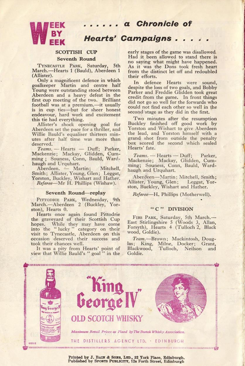 Sat 12 Mar 1955 Hearts 2 Aberdeen 0
