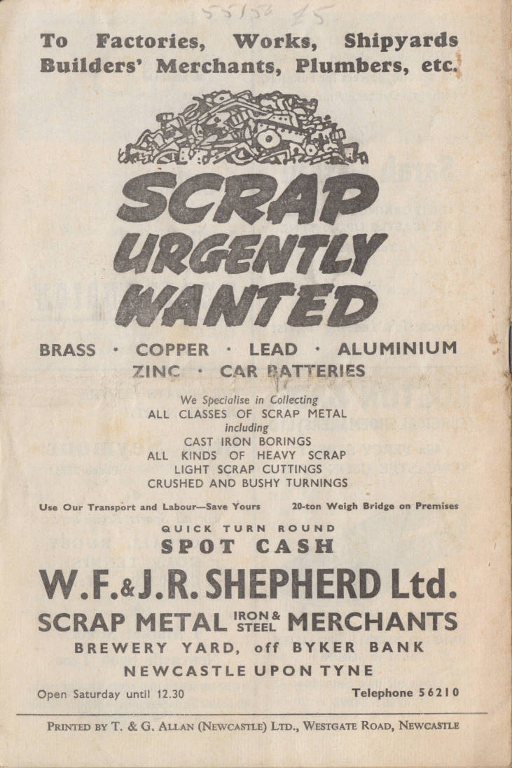 Mon 10 Oct 1955 Newcastle United 2 Hearts 2