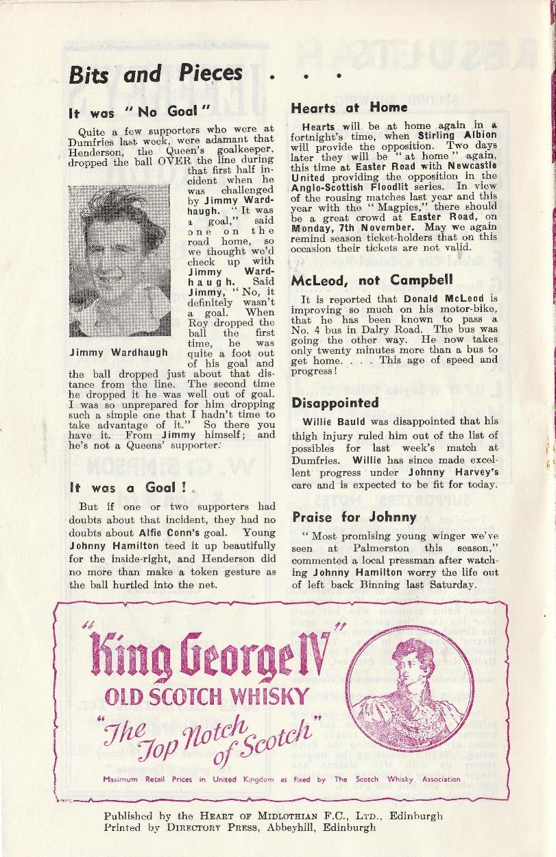 Sat 22 Oct 1955 Hearts 3 East Fife 1