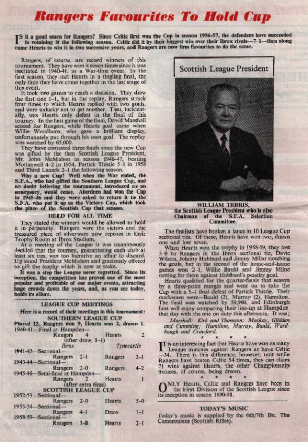 Sat 28 Oct 1961 Hearts 1 Rangers 1
