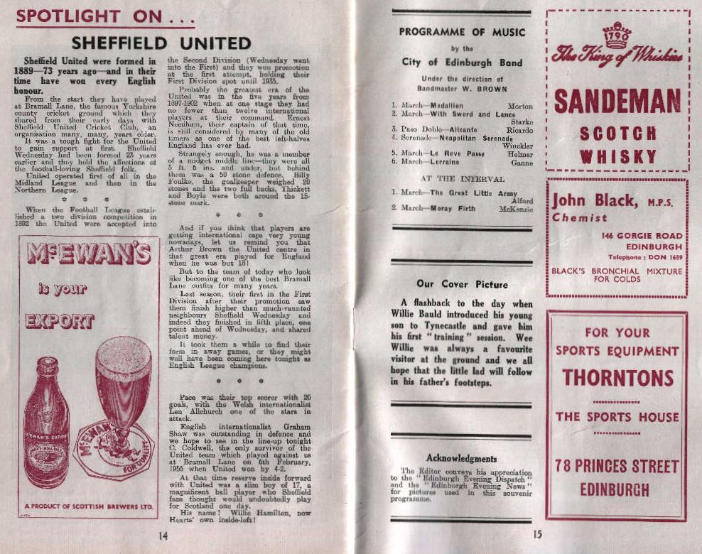 Mon 05 Nov 1962 Hearts 2 Sheffield United 2