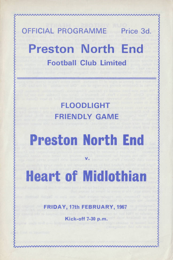 Fri 17 Feb 1967 Preston North End 0 Hearts 3