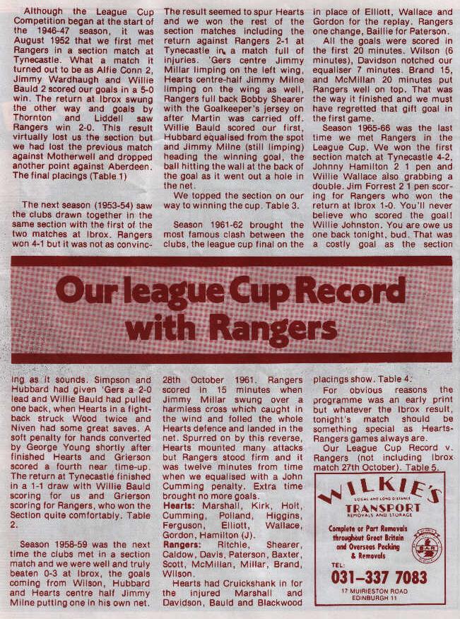 Wed 10 Nov 1982 Hearts 1 Rangers 2