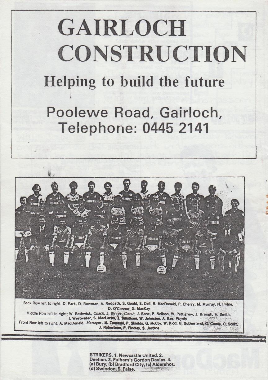 Sat 28 Jul 1984 Ross County 2 Hearts 2