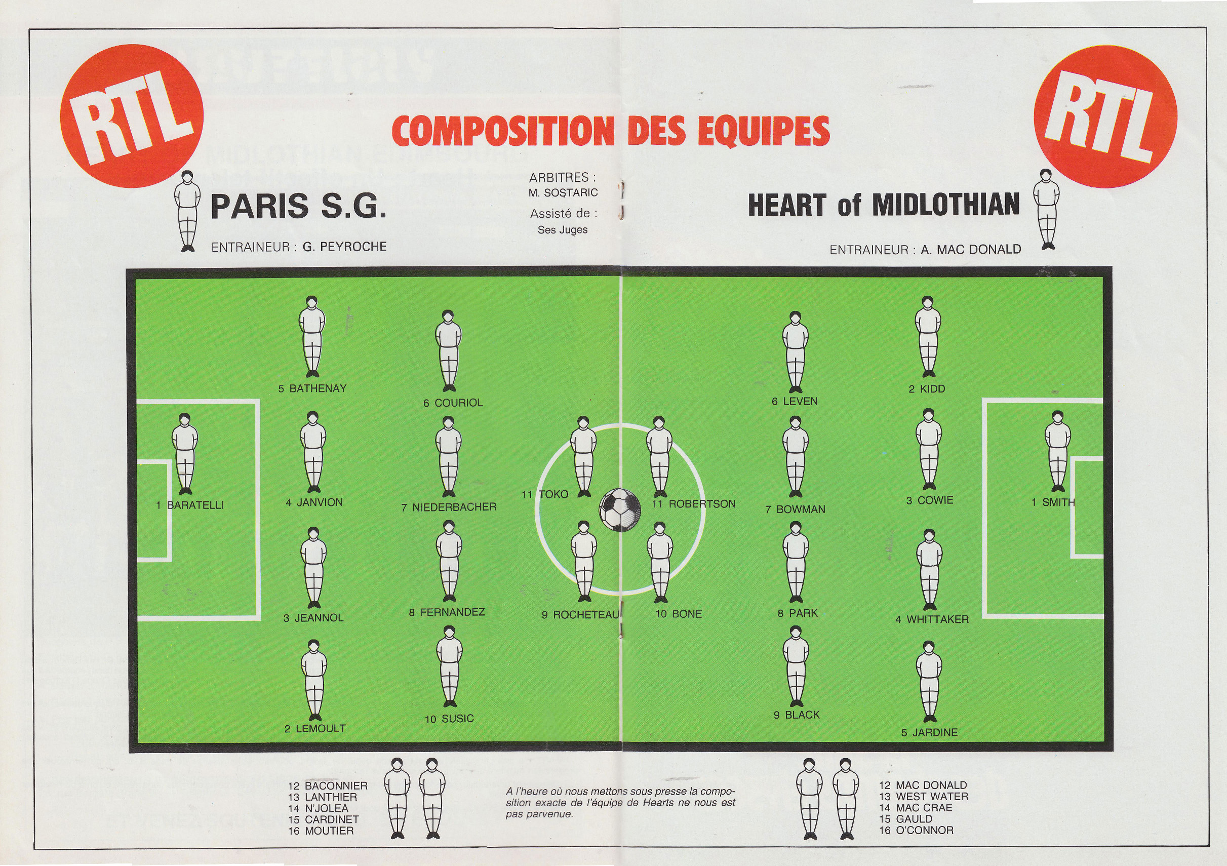 Wed 19 Sep 1984 Paris St Germain 4 Hearts 0