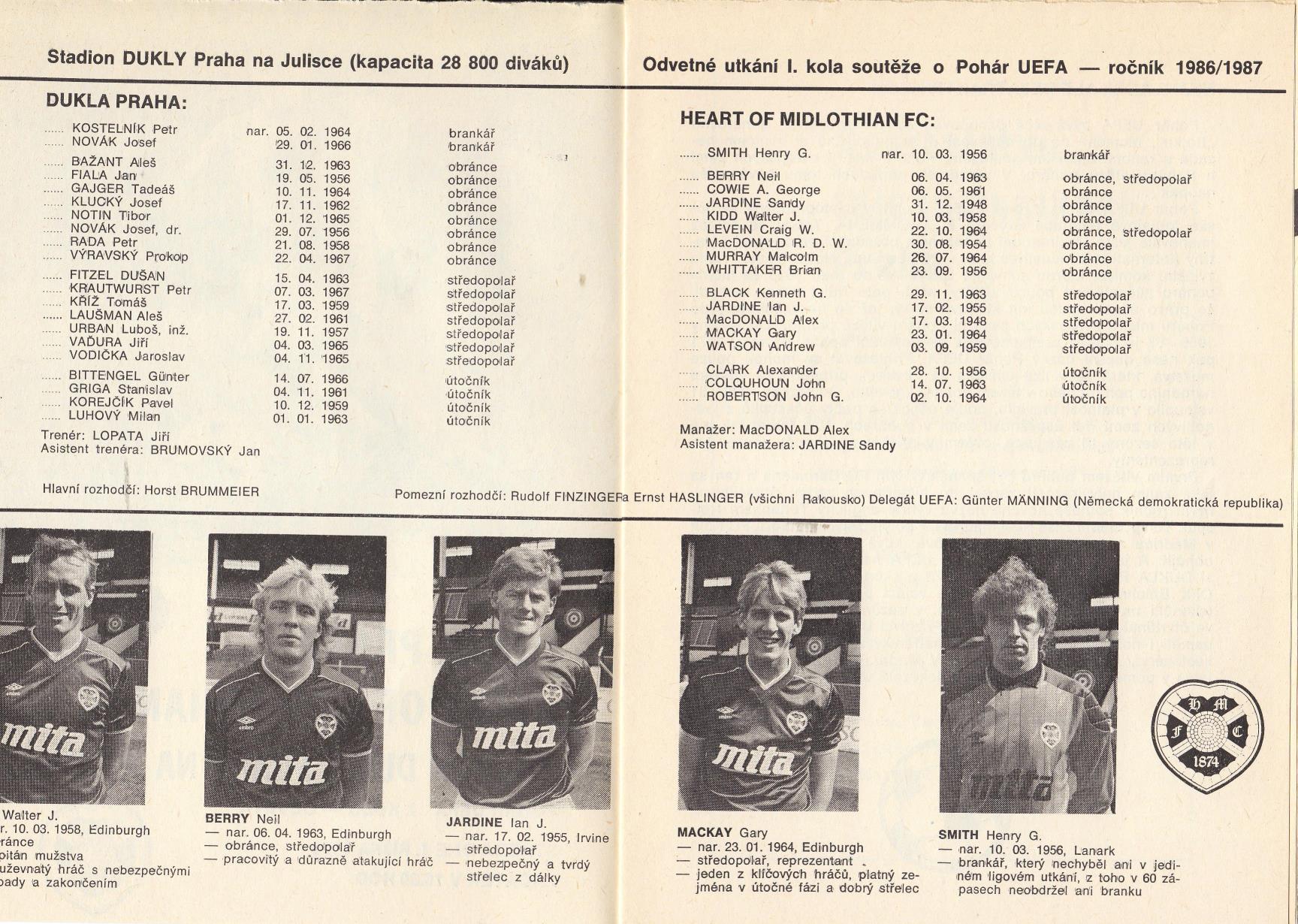 Wed 01 Oct 1986 Dukla Prague 1 Hearts 0