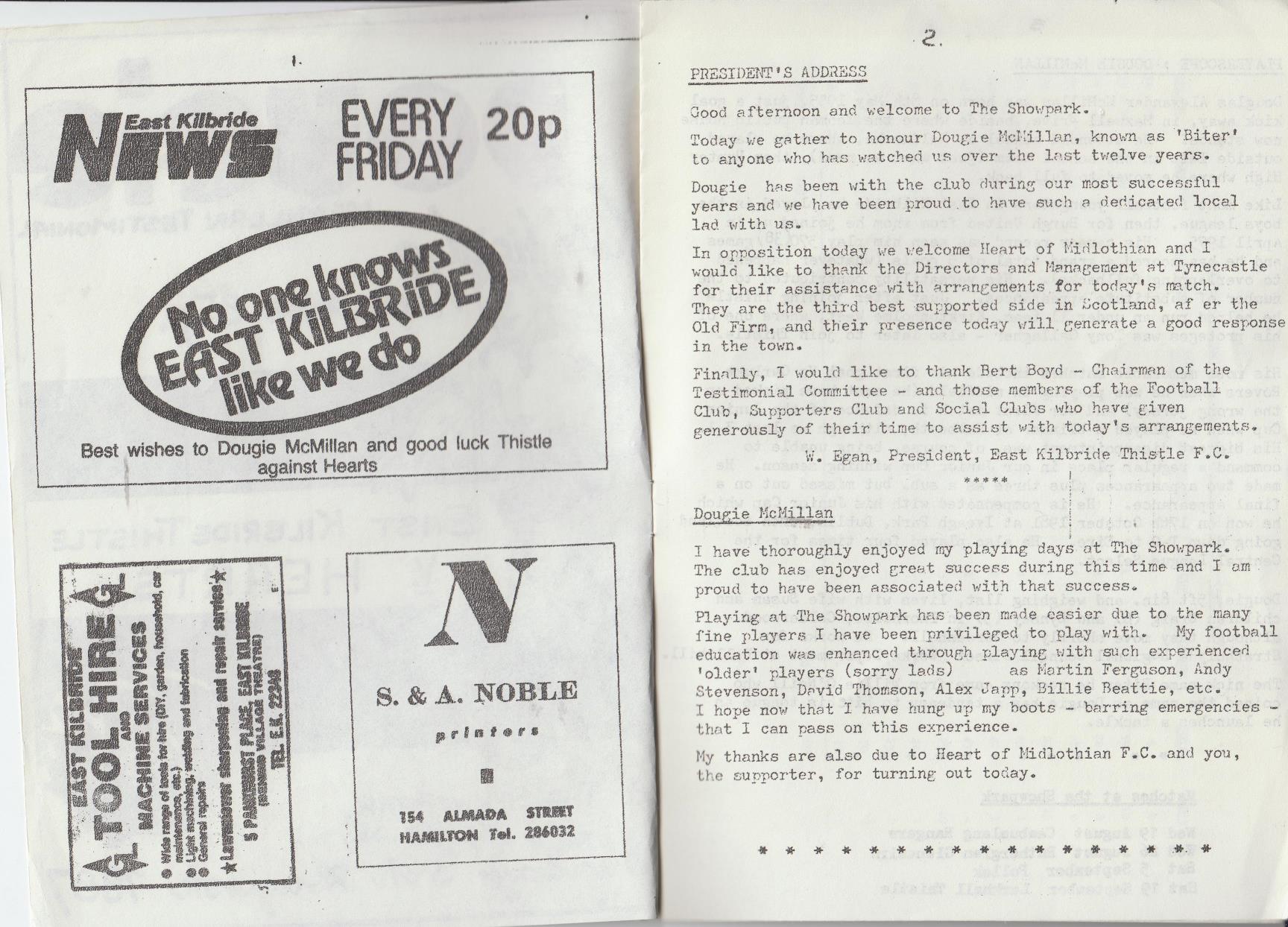 Sun 09 Aug 1987 East Kilbride Thistle - Hearts -