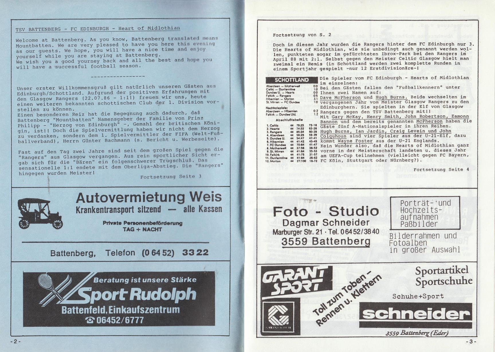 Wed 13 Jul 1988 TSV Battenberg 3 Hearts 3