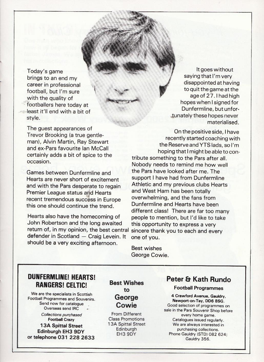 Sun 18 Dec 1988 Dunfermline Athletic 3 Hearts 5