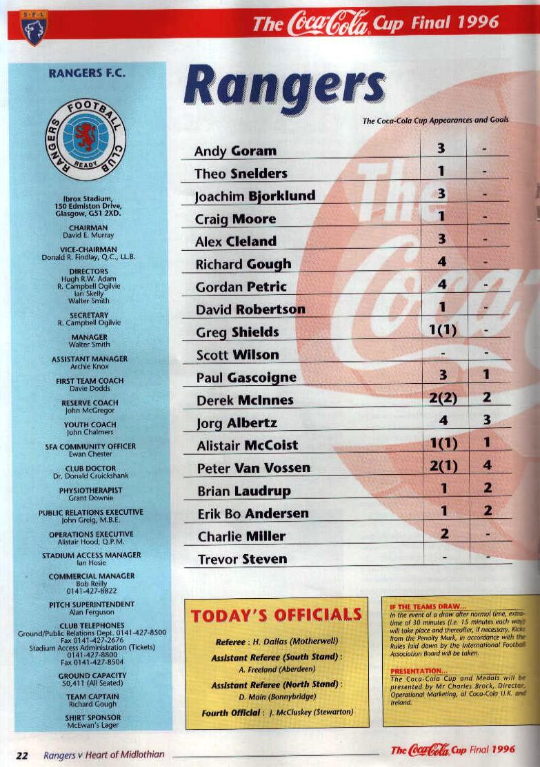 Sun 24 Nov 1996 Hearts 3 Rangers 4
