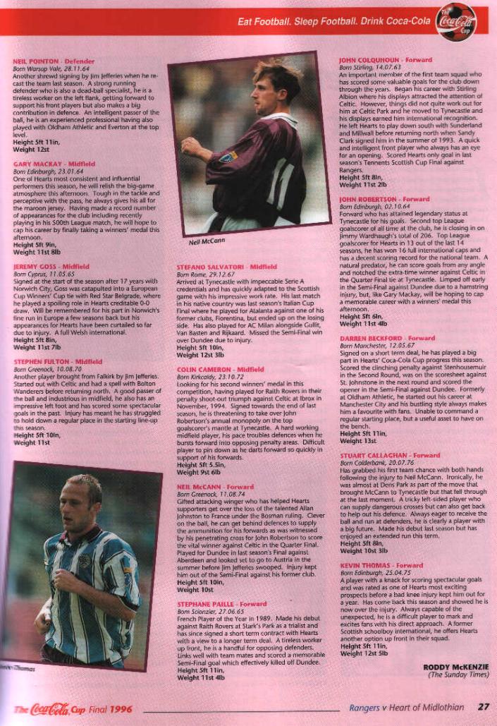 Sun 24 Nov 1996 Hearts 3 Rangers 4