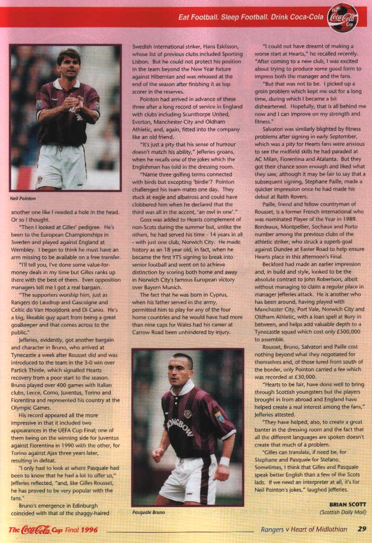 Sun 24 Nov 1996 Hearts 3 Rangers 4