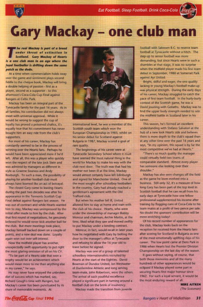 Sun 24 Nov 1996 Hearts 3 Rangers 4