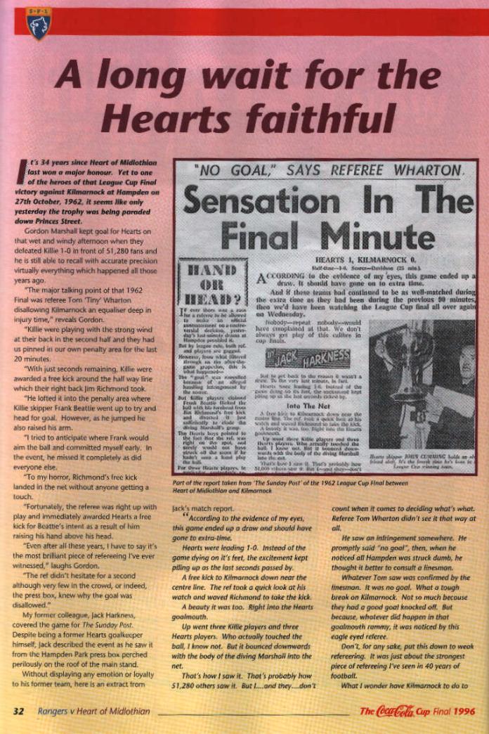 Sun 24 Nov 1996 Hearts 3 Rangers 4