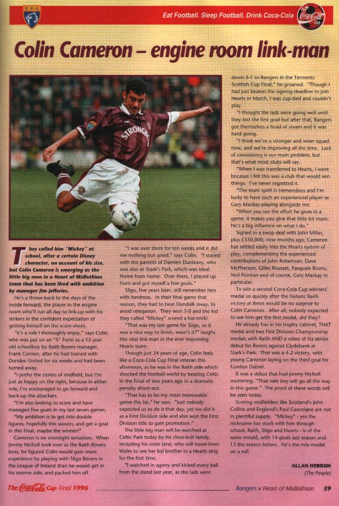 Sun 24 Nov 1996 Hearts 3 Rangers 4
