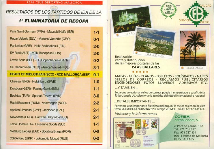 Thu 01 Oct 1998 Real Mallorca 1 Hearts 1